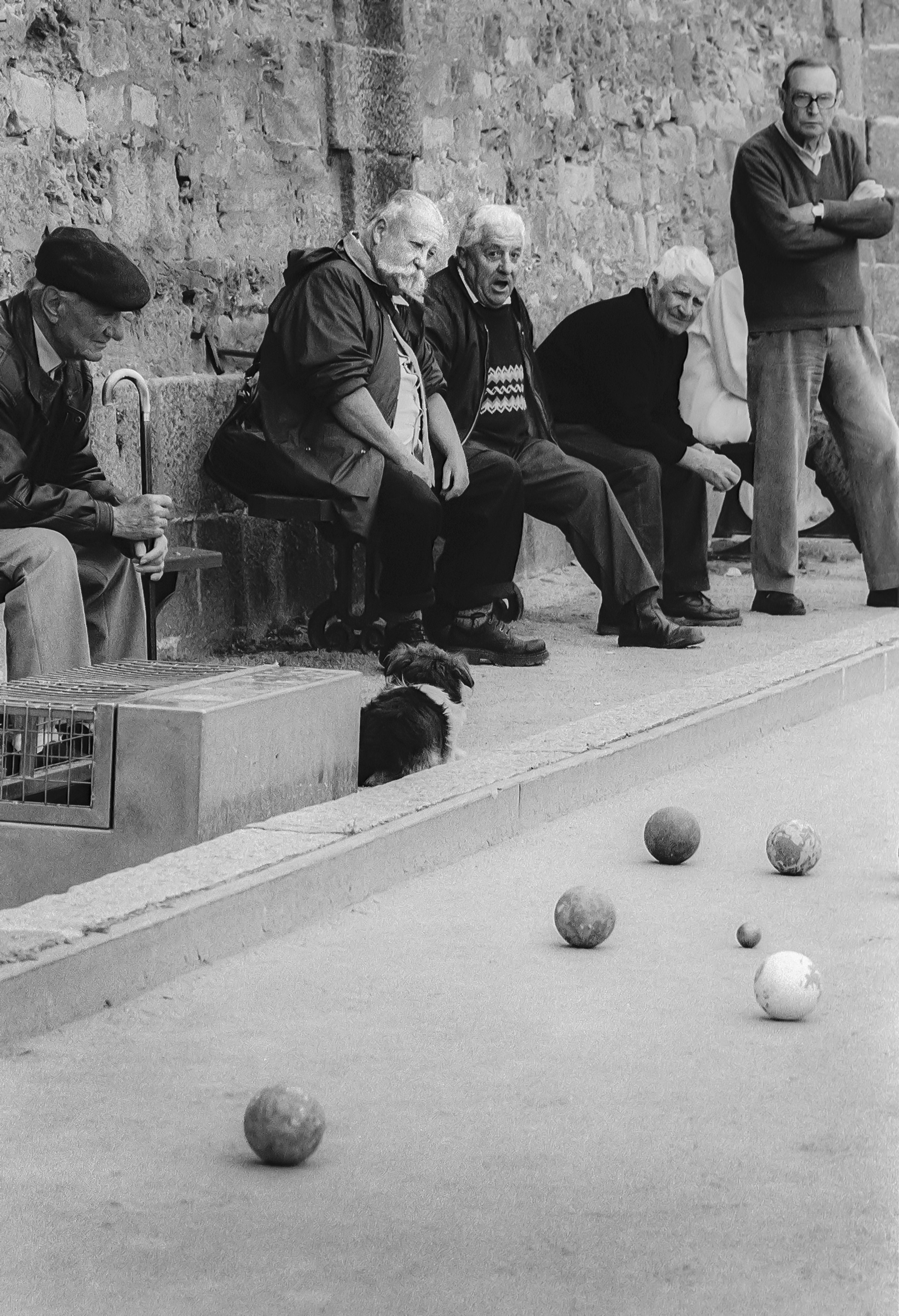 Die mächtige Stadtmauer rund um Intra-Muros, die Altstadt von Saint Malo, ist immer wieder ein Lieblingsplatz. Zwischen den klotzigen Steinwällen und dem Fähranleger versammeln sich allabendlich die Boule-Spieler. Sie sind eine unglaubliche Ansammlung der Skurrilität auf zwei Beinen: Das gallische Dorf lebt, das Albert Uderzo und René Goscinny so liebevoll verschroben in ihren Comics verewigten. Genau hier debattieren Methusalix und seine Freunde die kniffligen Fragen angemessener Wurftechnik für die bunten Kugeln. Sorgfältig sind dicke Nägel in die Ritzen des Mauerwerks geklemmt. Nicht nur improvisierte Garderobe und Aufbewahrungsort für Jacken und Mützen aller Formen und Farben, sondern auch als Befestigung für ein Zählbrett. Penibel wird der Punktestand der Partie Boule Bretonne festgehalten. »Nous«, »wir« auf der einen, auf der anderen Seite leicht despektierlich „Eux“, »die« für die gegnerische Mannschaft.