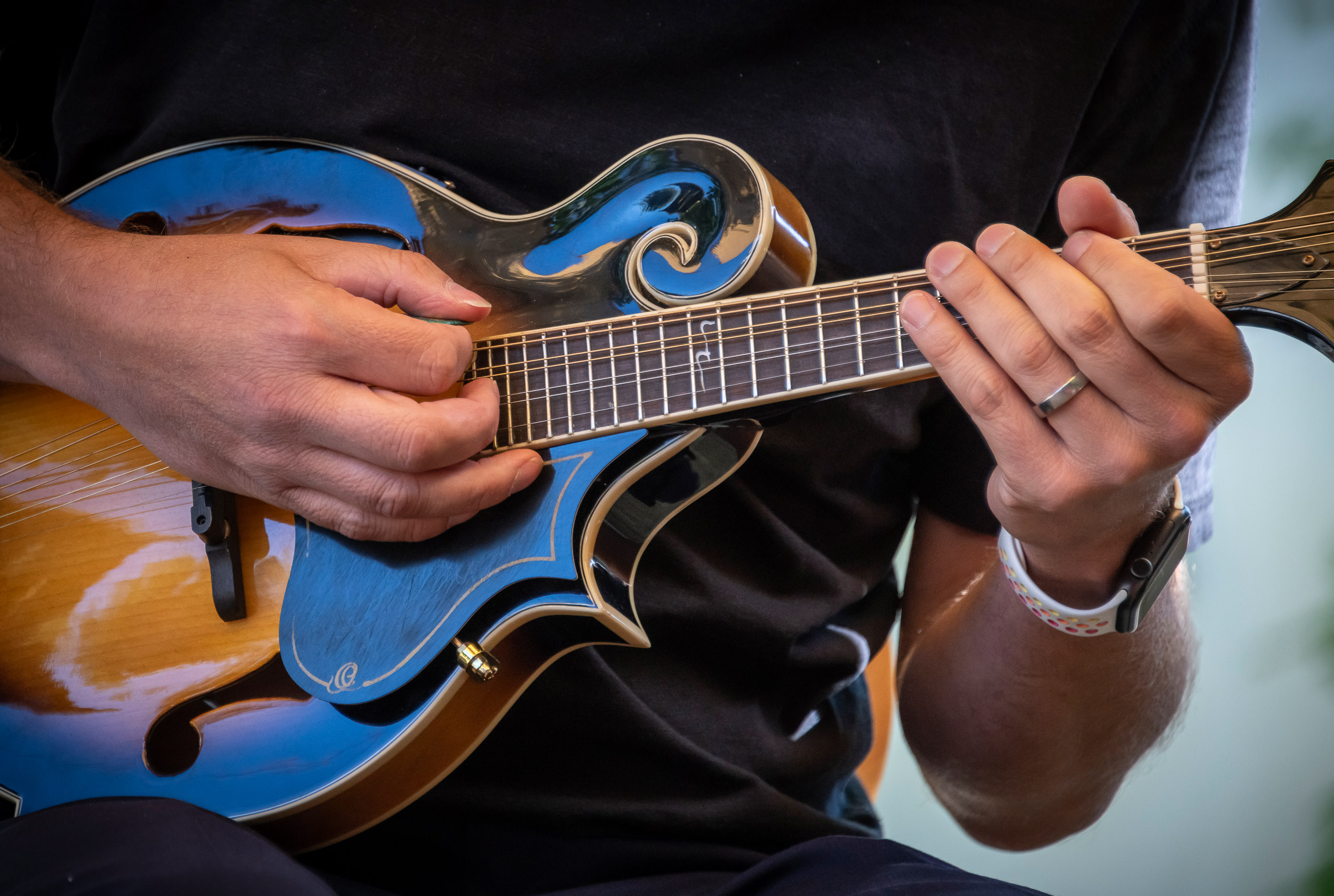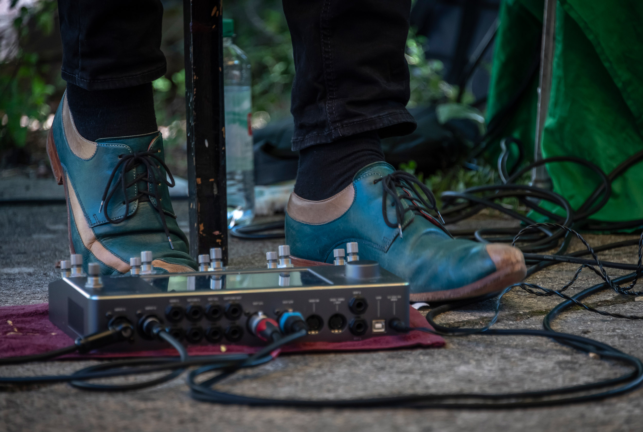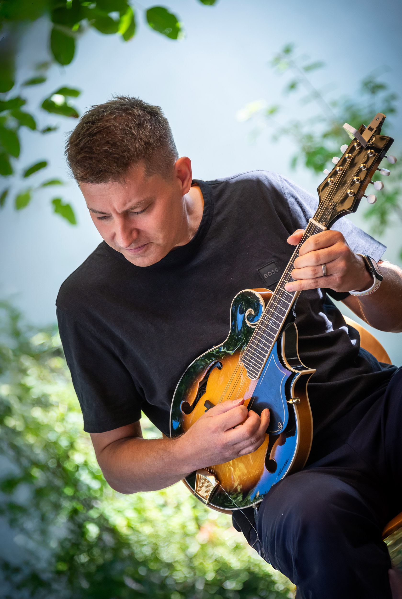 Auch eine Mandoline kommt in meinen Pariser Erinnerungen vor, eine, wie sie Daniel Stelter spielt und augenzwinkernd erzählt, in einer Konzertkritik über den Satz »Harfe spielt Daniel Stelter auch…« zu stolpern, weil dieses Instrument, anderswo weit verbreitet, hierzulande offenbar weniger bekannt oder möglicherweise aus der Mode geraten ist. Die Funken sprühen in den grauen Zellen, meine Gedanken sind auf Reisen, hierhin und dorthin – und die Bilder entstehen parallel dazu, getragen von Klängen, erinnerten Momenten und dem verzauberten Innenhof des »Hier und Jetzt«, einem der Veranstaltungsorte von GonsKultur e.V. . Sie sind ein wenig Rückkehr zu fotografischen Wurzeln, diese Bilder: Zu den Zeiten, als ich noch gerne und viel Konzerte fotografierte. Damals, als Künstlermanagement und -agenturen noch nicht auf unsägliche Ideen von Knebelverträgen, rigiden Beschränkungen und Zutrittsverboten für Fotografen kamen; damals, als die Atmosphäre entspannter war als heute, als Bilder während Soundchecks, heiteres Plaudern mit Künstlern und … Begegnung in kleinerem Rahmen möglich war, inspirierend und bereichernd in jeder Hinsicht.