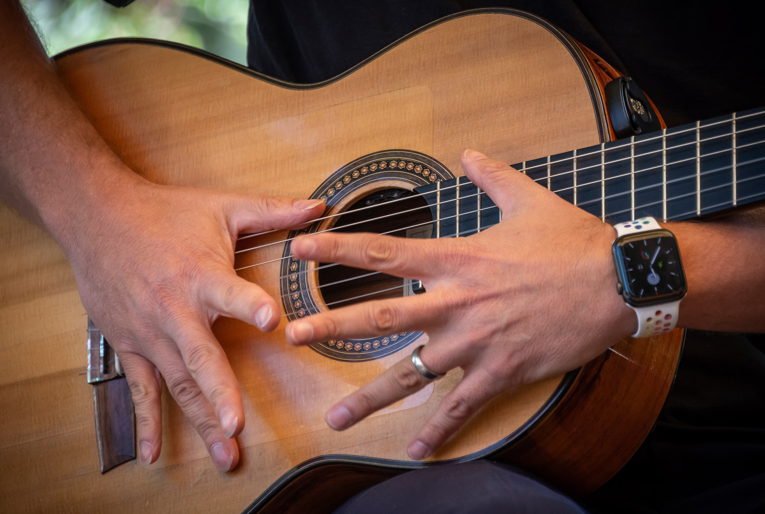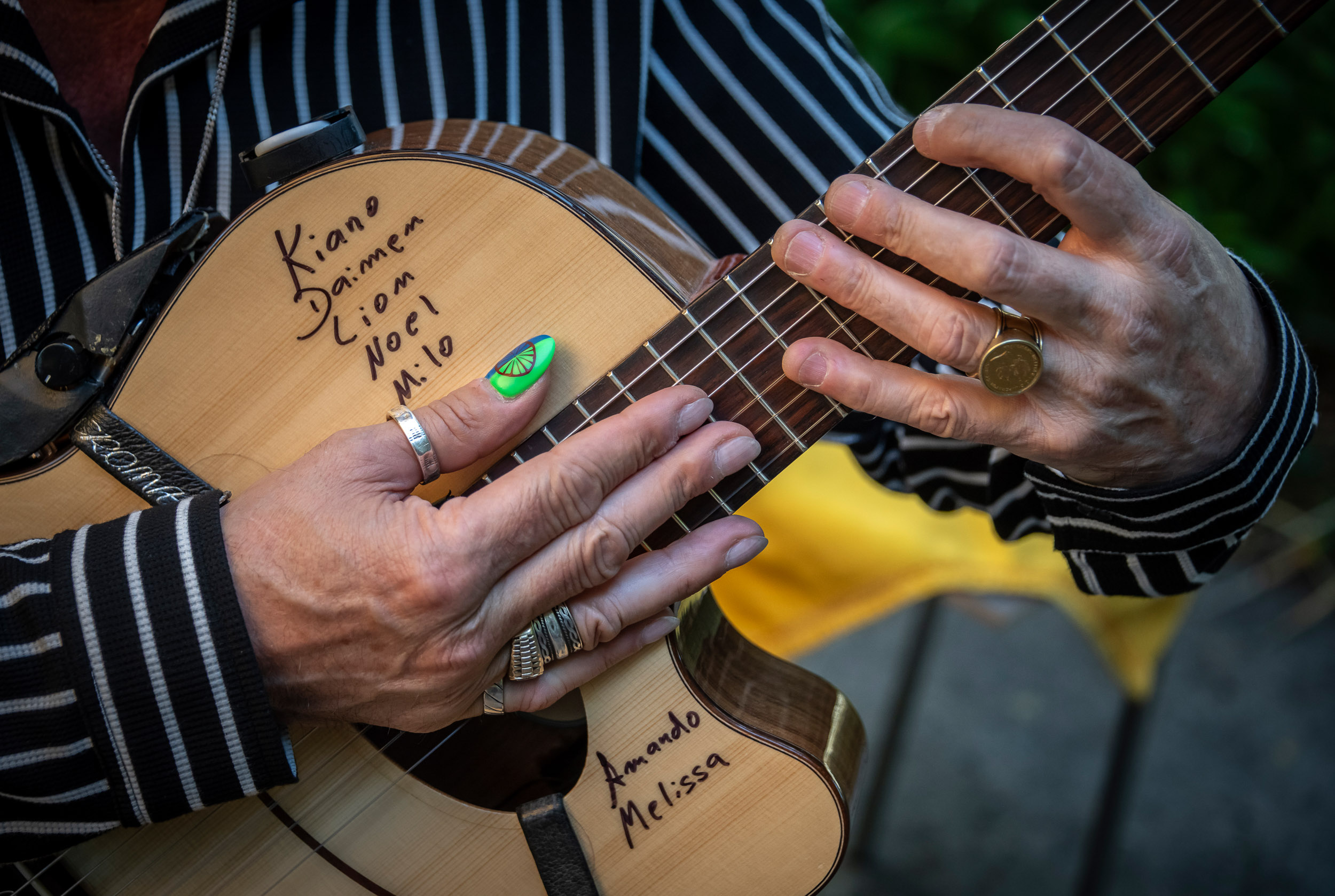Entspannte Atmosphäre an bezaubernden Orten, Gespräche mit den Musikern vor und nach dem Konzert, Bilder im Kopf und in der Kamera: Der Charme kleiner Konzerte liegt in der Inspiration, in der Begegnung mit Musik, mit Details und grandiosen Künstlern wie Daniel Stelter und Lulo Reinhardt. Namen von Familienmitgliedern auf der Gitarre, sie begleiten unterwegs Herz und Seele wie die Familienflagge der Sinti auf dem Daumennagel. Ein abgeschlepptes Auto in Belleville, Paris, daraus wird ein Stück, Hotel de Paris, wunderbar melancholisch – und schon werden die Erinnerungen an eigene Zeiten zwischen Mainz und Paris lebendig, zwischen Belleville und Barbès, in den kleinen Läden mit so unfassbar vielfältigem Innenleben. Gewürze, indische Saris, Geschirr aus Afrika und China, Wax Cotton bei Waris, Stoffballen unterhalb von Montmartre, Couscous und höllenscharfe Harissa von Tatie Fatoumata, die Hammelköpfe vom Grill nebenan bei Osmane. Und überall: Musik aus aller Herren Länder entlang des Boulevards Rochechouart, um den Gare de l’Est und im chinesisch-vietnamesischen Viertel in Belleville.